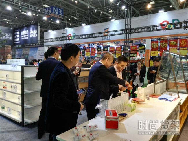 雖說CHINASHOP 2017現場精英齊聚,但是時尚貨架也絲毫不遜色于其他參展商,依然以搶眼的造型設計、舒適的空間布局、專業的產品介紹贏得了在場觀眾的好感。展會還有兩天,時尚貨架展位全體工作人員一定會以更好地精神面貌服務到場參觀的觀眾,期待各位的蒞臨。