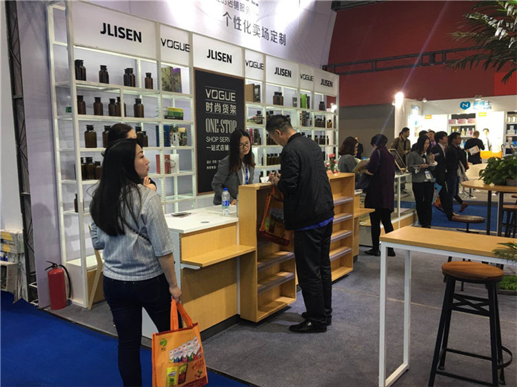 觀眾絡繹不絕地走進時尚貨架展位,有意向觀眾當場就留下了聯系方式