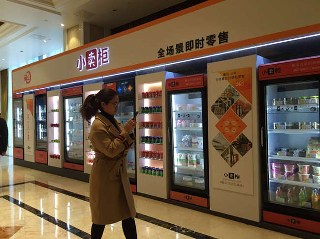 這樣,一個占地面積0.35平方米的小賣柜,可以適應多種場所,包括辦公樓、社區、學校、醫院、廠區、交通驛站等,商品除了零食飲料外,還可延伸至生活用品、生鮮食品等。