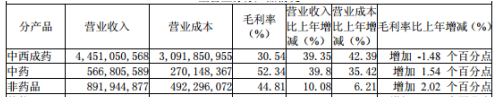以老百姓大藥房為例,根據(jù)其2016年主營業(yè)務(wù)相關(guān)收入情況來看,藥店內(nèi)中藥的毛利率較高,達(dá)到52.34%,緊隨其后的是非藥品達(dá)到44.81%,就算是毛利率最低的中西成藥也是達(dá)到了30.54%。
