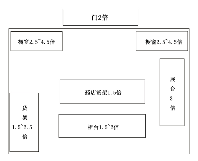 (假設店內平均照明為1,超過1表示需要特別加強照明之處)