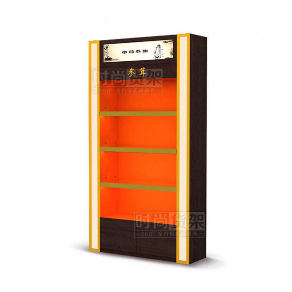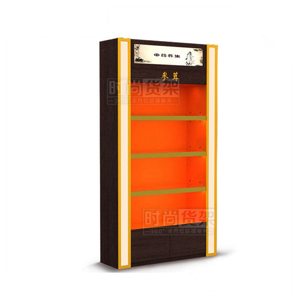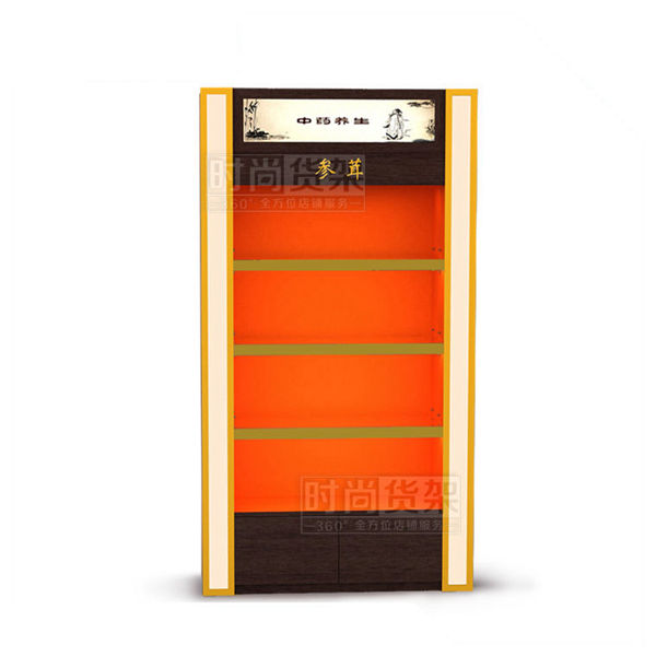 【描述】本款藥店參茸柜是時尚貨架2017年推出的最新一代藥店參茸背柜,紫檀木紋讓參茸背柜增加了古樸典雅的氣息。雙燈箱設計讓整個參茸區更醒目,可以有效提醒有意向的顧客前來選購。參茸展示柜底部采用外開門地柜設計,方便放置更多備用藥材,并進行了防鼠設計,避免珍貴藥材的損失!