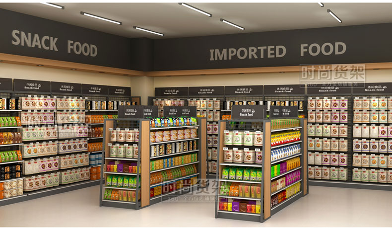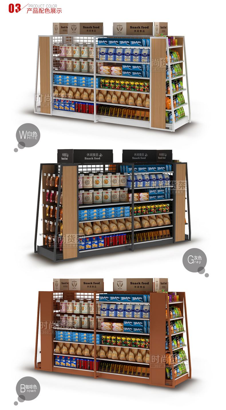 此款超市貨架是深圳貨架廠【時尚貨架】專為超市食品區域打造的一款通透性更強的網背板零食貨架。更多超市貨架可點擊http://m.zzyrjg.cn/supermarket/spzsq/,如需采購超市貨架,請咨詢客服!